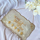 • Opulent Gold Accents: The edges of the book rest are framed with a rich, metallic liquid gold border, while shimmering gold foil flakes are delicately embedded within the resin, catching the light like scattered starlight.